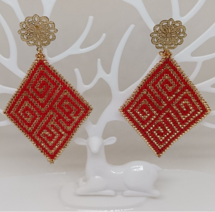 Arete rombo arabesco técnica peyote en delicas en miyuki, hecho a mano, elije el color que te guste.