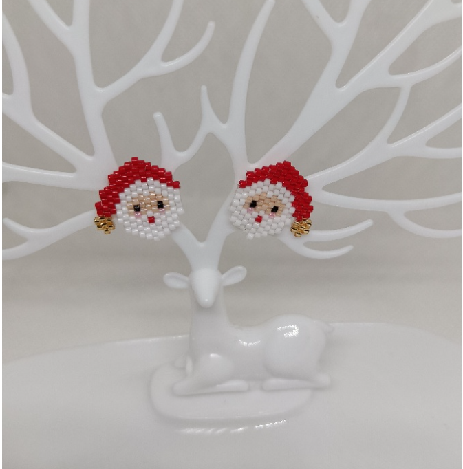 Arete Santa Claus técnica peyote en delicas en miyuki, hecho a mano