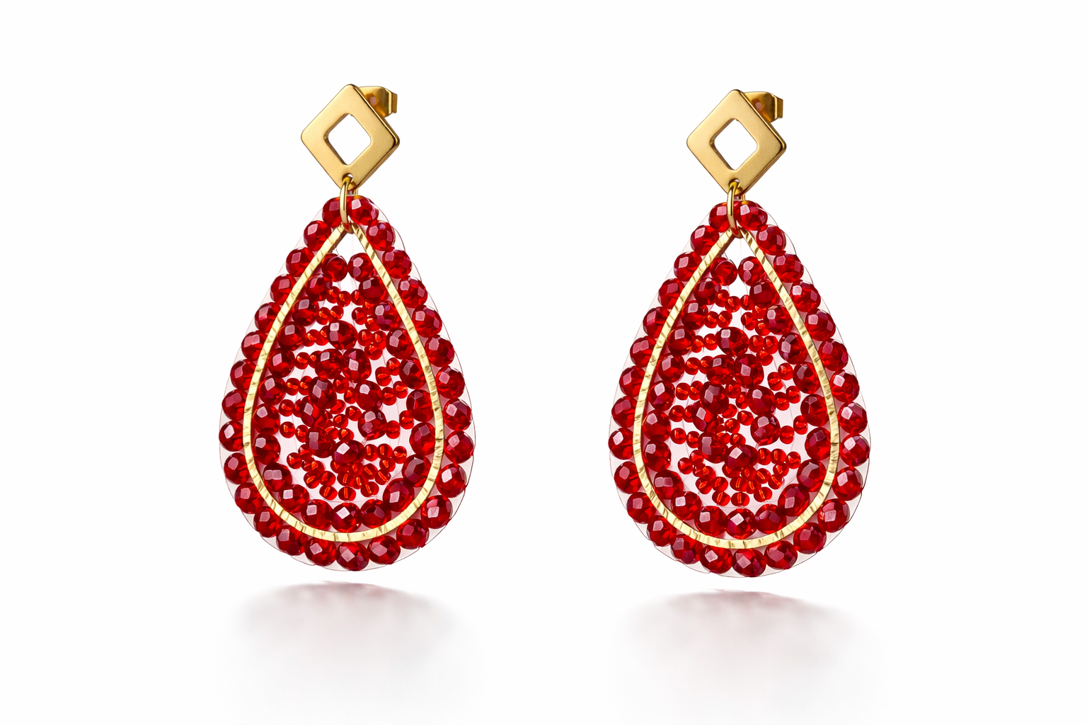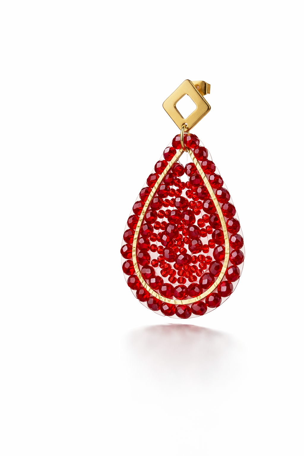 Aretes hechos a mano con cristal facetados y un toque dorado para momentos especiales.